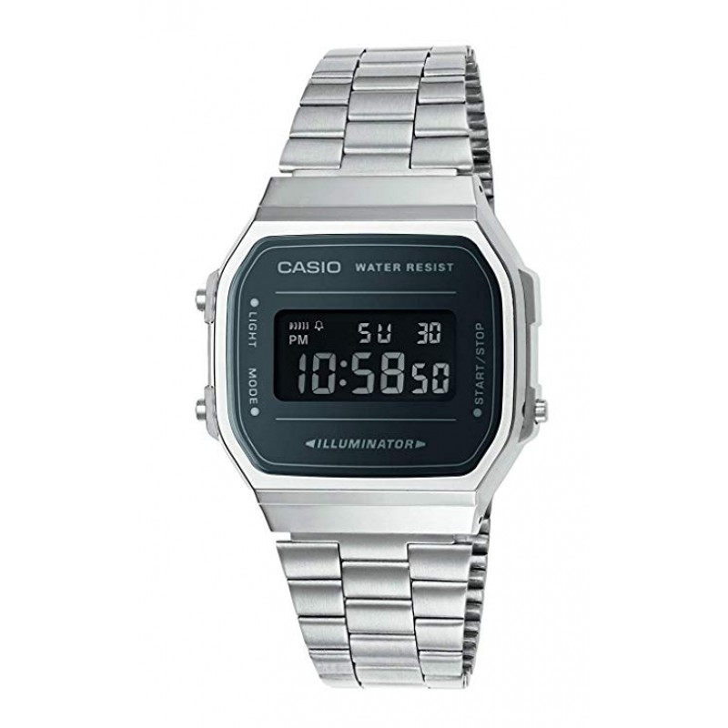 Marca: CasioNome modello: A168WEM-1EFForma: OvaleTipo di vetro:  AcrilicoTipo di quadrante: DigitaleMateriale della cassa: ResinaDiametro della cassa: 36 mmDimensione caso: SmallSpessore della cassa: 9 mmMateriale del cinturino: Acciaio inoxLunghezza cinturino: Women's StandardLarghezza cinturino: 36 mmColore cinturino: ArgentoColore quadrante: NeroMateriale della lunetta: EdelstahlTipo di calendario: DataCaratteristiche speciali: Allarme, Cronografo, LucePeso: 50 grammiTipo di meccanismo: QuarzoPressione massima: 3 barOROLOGIO NUOVO DI FABBRICA, GARANZIA 24 MESI. L'OROLOGIO E' ACCOMPAGNATO DA SCONTRINO FISCALE