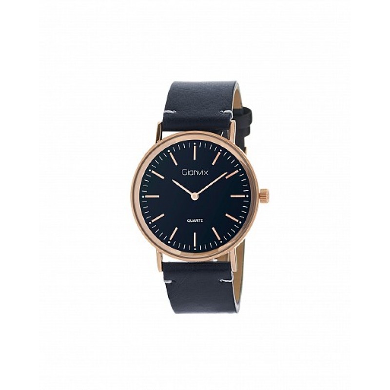 Orologio uomo con movimento al quartz. Cassa color oro rosa con diametro 42mm. Corona a pressione. Fondello serrato a pressione. Quadrante blu con indici e sfere color oro rosa. Cinturino in pelle blu. Orologio autentico, nuovo di fabbrica, garanzia 24 mesi e scatola Gianvix. L'orologio è accompagnato da scontrino fiscale
