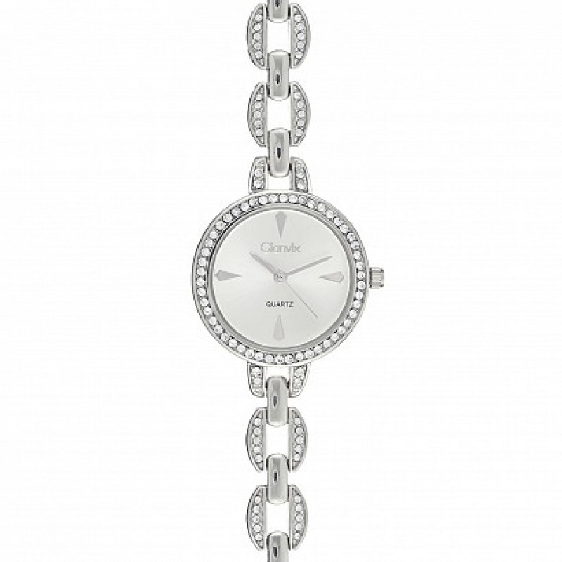 Orologio donna con movimento al quartz. Cassa diametro 28mm. Lunetta con zirconi. Corona a pressione. Fondello a pressione. Quadrante silver con sfere ed indici color silver. Bracciale in metallo con zirconi bianchi, garanzia 24 mesi e scatola Gianvix. L'orologio è accompagnato da scontrino fiscale