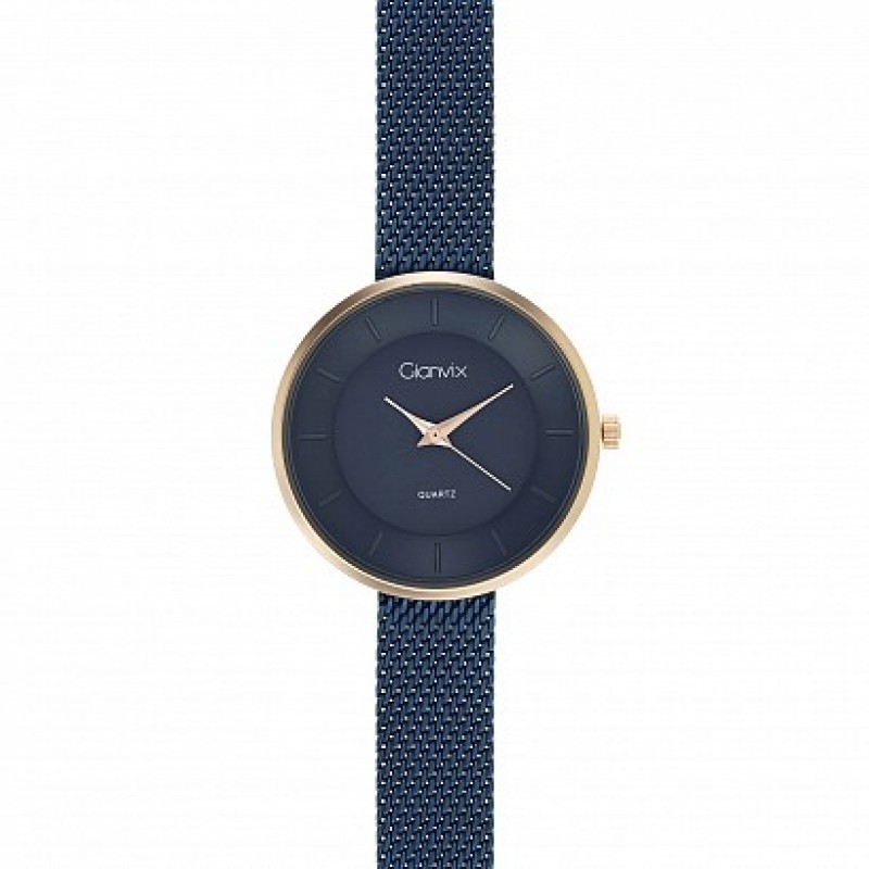 Orologio donna con movimento al quartz. Cassa color oro rosa diametro 32 mm. Corona a pressione. Fondello a pressione. Quadrante blu con sfere color oro rosa. Bracciale in acciaio brunito tessito. Orologio autentico, garanzia 24 mesi e scatola Gianvix. L'orologio è accompagnato da scontrino fiscale