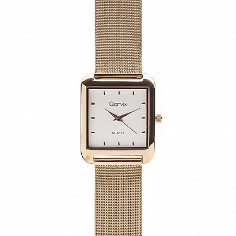 Orologio donna con movimento al quartz. Cassa in metallo 40x30 mm. Corona a pressione. Fondello a pressione. Quadrante quadrato bianco con sfere e indici color oro. Bracciale tessito. Orologio autentic, garanzia 24 mesi e scatola Gianvix. L'orologio è accompagnato da scontrino fiscale